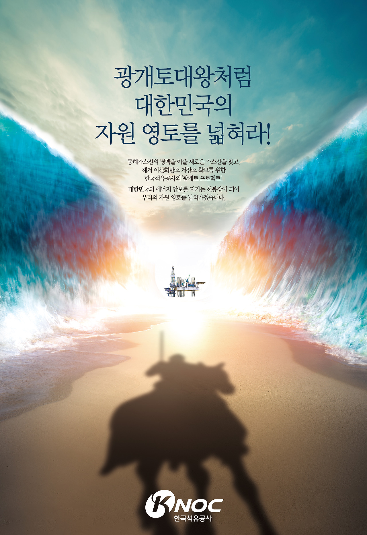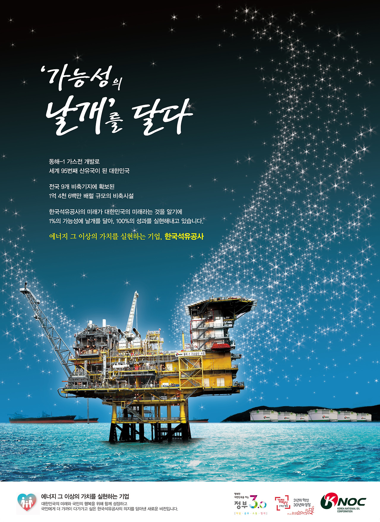 한국석유공사는 공기업이기에 '에너지 그 이상의 가치를 실현하는 기업' 카피로 기업과 나라의 발전을 메인으로 광고하며 자사의 '동해 가스전'을 이미지로 사용하고 있습니다.